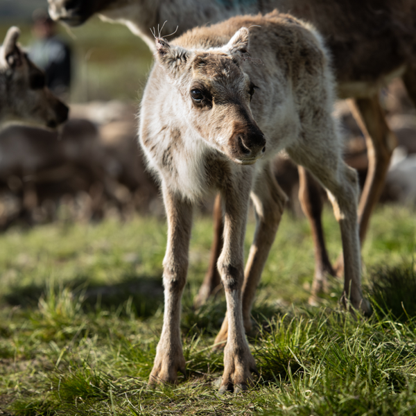 Visste du att färgen på en renens öga ändrar sig med årstiderna? På sommaren är baksidan av en rens ögonboll ofta gyllengul, men på vintern blir den ljusblå. På vintern här uppe når inte solen över horisonten under flera månader. Vinterskymningens ljus är svagt och har mycket blått i sig. Att göra denna del av deras öga blå förbättrar deras näthinna betydligt och ökar deras syn i de mörka vinterförhållandena, vilket hjälper dem att överleva. Samtidigt behöver de inte denna extra känslighet eller nattsyn under sommaren när det är 24-timmars dagsljus.